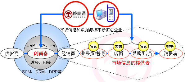 通过终端通,企业可以将每个接触自己产品的终端对象(如业务员、终端店面、消费者、导购、巡店员等)变成自己的市场情报员。他们有电脑用电脑,没电脑用手机。通过他们的参与,企业就可以更加快捷、准确、全面地掌握终端市场资讯,从而得出对市场的准确判断,保证企业能及时、正确地做出决策。