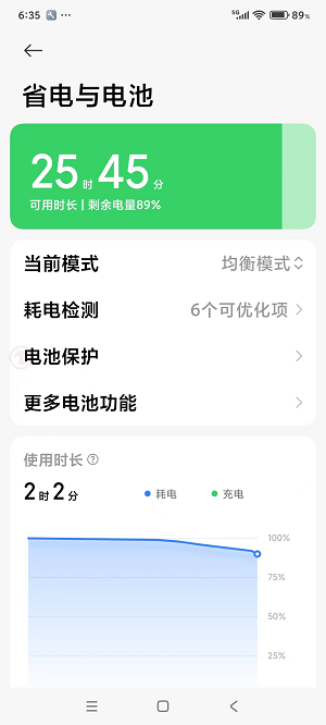 注意:在手机设置页面,需要兼顾各种机型说明,你需要按自己的手机进行设置。下面以小米机型的省电与电池为例说明。我手中的小米手机(你手里的可能不同)选择设置app-省电与电池,出现如下界面: