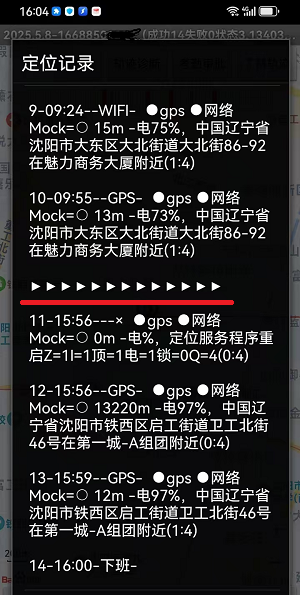 如果你用手机查看员工轨迹,定位记录如下图: